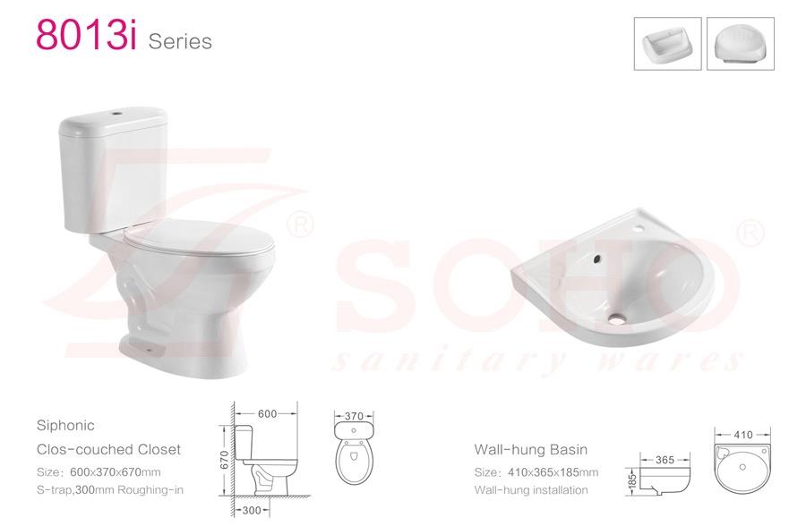 Siphonic Clos-couched Closet 600*370*670MM S-trap:300mm roughing-in Wall-hung Basin 410*365*185MM Wall-hung installation