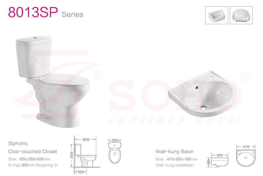Siphonic Clos-couched Closet 600*350*650MM S-trap:300mm roughing-in Wall-hung Basin 410*365*185MM Wall-hung installation