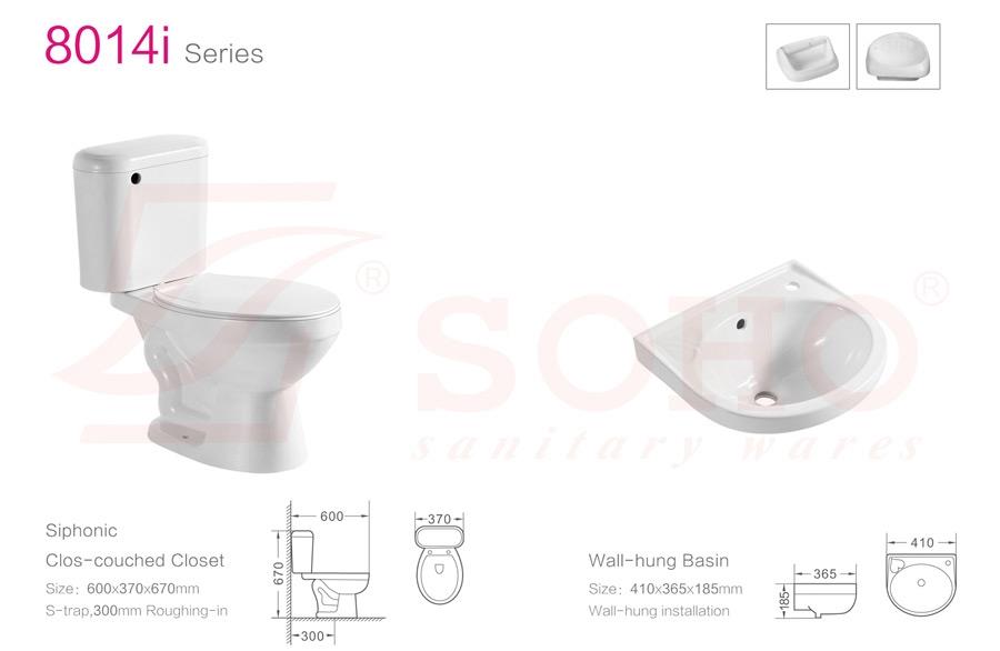 Siphonic Clos-couched Closet 600*370*670MM S-trap:300mm roughing-in Wall-hung Basin 410*365*185MM Wall-hung installation